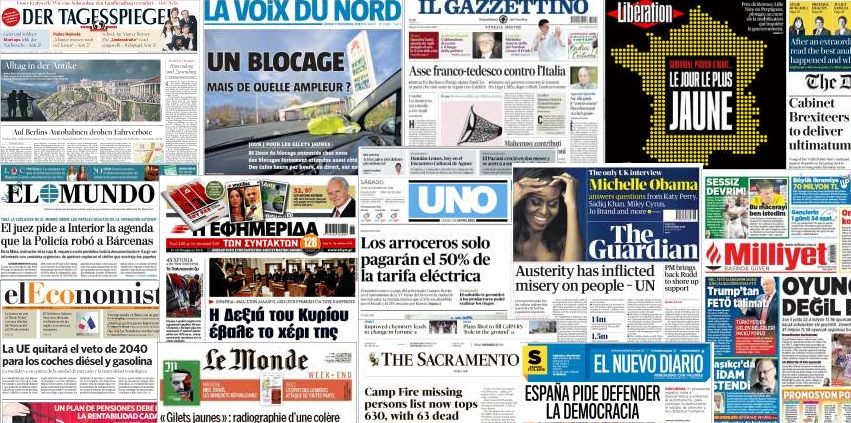 Né sur les réseaux sociaux, le mouvement des gilets jaunes illustre la colère spontanée d'une France rurale et périurbaine qui s'estime abandonnée par l'Etat. Il a émergé pour protester contre la hausse des prix du carburant appellant à bloquer les axes routiers. L'éxécutif se retrouve démuni face à un mouvement sans leader qui reste soutenu par une majorité de français malgré l'annonce de mesures d'aide jugée bonnes. L'Etat craint des débordements tandis que les écologistes s'inquiètent des répercussions sur la transition énergétique. Les tentatives de récupération et d'instrumentalisation de l'opposition, notamment de l'extrême droite inquiètent aussi tandis que les syndicats restent à l'écart.