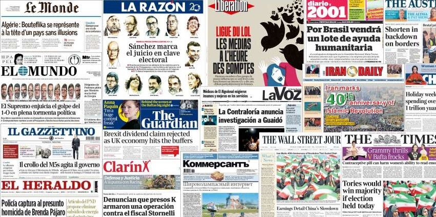 L'essentiel du 12 février 2019Synthèse de l'actualité internationale du 12 février 2019 qui retrace les faits marquants dans l'information africaine, américaine, asiatique et européenne traitée et commentée par les organes de presse.