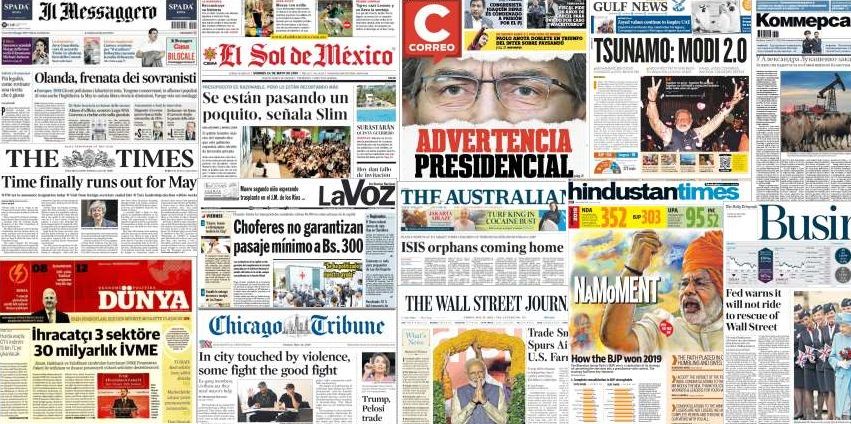 Une sélection des unes de presse et des principaux sujets d'actualité du jour qui ont été traités, analysés et commentés dans les médias internationaux. L'essentiel du 23-05-2019L'essentiel du 22-05-2019L'essentiel du 21-05-2019L'essentiel du 20-05-2019L'essentiel du 18-05-2019L'essentiel du 17-05-2019L'essentiel du 16-05-2019L'essentiel du 15-05-2019L'essentiel du 14-05-2019L'essentiel du 13-05-2019 |