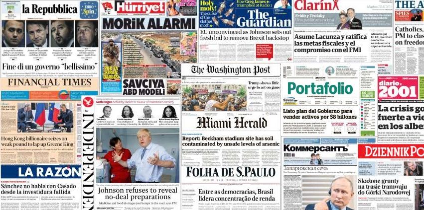 Synthèse de l'actualité internationale du 20 aout 2019 qui retrace les faits marquants dans l'information africaine, américaine, asiatique et européenne traitée et commentée par les organes de presse.