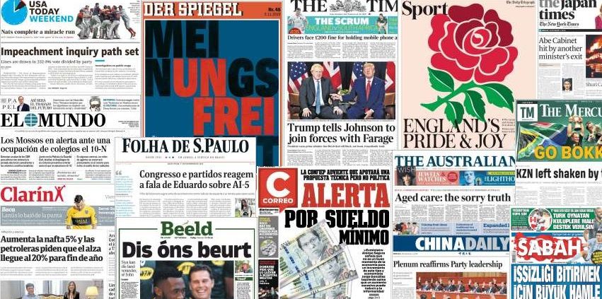 Quelques unes de la presse internationale du 01-11-2019 1) La contestation au Pakistan continue de faire la une des médias. Après avoir traversé une partie du pays depuis plusieurs jours, des milliers d'islamistes convergent vers Islamabad à l'appel du Jamiat Ulema-e-Islam. Rassemblés dans la capitale pakistanaise, Ils ont lancé un ultimatum au premier ministre Imran Khan pour qu'il démissionne. Les islamistes estiment que celui-ci a été sélectionné de manière frauduleuse par l'armée et appellent à de nouvelles élections. 2) En Algérie, c'est toujours la contestation contre le régime politique qui retient l'attention. Lors de la Fête de la Révolution qui coïncidait avec le 37e vendredi de manifestation, une marée humaine a investi les rues d'Alger pour une nouvelle Révolution. Les réseaux sociaux sont au coeur de cette nouvelle mobilisation. Les manifestants rappellent que leurs ainés se sont battu contre la France et qu'ils doivent combattre le système qui à confisqué l'indépendance. 3) Au Brésil, les médias sont la cible du président brésilien. M. Bolsonaro s'en prend notamment à TV Globo, à la revue Vista et au quotidien Folha de S.Paulo qui ont cité son nom dans leurs enquêtes respectives sur le meurtre de la conseillère municipale de gauche Marielle Franco, en 2018. A l'image de Donald Trump, il a particulièrement demandé l'arrêt des abonnements des organes gouvernementaux à Folha, et a menacé de manière voilé ses annonceurs. 4) Enfin au Panama, on retiendra les manifestations contre un projet de réforme constitutionnelle. Un article empêchant une future légalistation du mariage homosexuel est notamment à l'origine de la colère de plusieurs organisations sociales. Des incidents ont par ailleurs opposé des étudiants aux forces de l'ordre. Avant son ajout, la réforme faisait pourtant l'objet d'un large consensus politique et visait à renforcer les institutions et lutter contre la corruption.