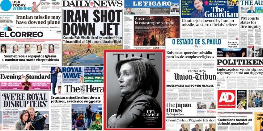 ⊛ Egypte: Le pays est une destination favorite des touristes (Lepoint.fr) ⊛ Mali: Bamako: Le sentiment anti-français gagne du terrain (Lemonde.fr) ⊛ Maroc: Campagne de répression sur les réseaux sociaux (Lexpress.fr) ⊛ RDC: Enquête pour crimes contre l'humanité en Ituri (Francetvinfo.fr) ⊛ Tunisie: Gouvernement: Un vote de confiance incertain (Lorientlejour.com) ⊛ Etats-Unis: Crise: Nouvelles sanctions contre le régime iranien (France24.com) ⊛ Etats-Unis: Limitation des pouvoirs militaires de Trump en Iran (Rfi.fr) ⊛ Chine: Embarras de Pékin face à la présidentielle de Taïwan (Lemonde.fr) ⊛ Chine: HK: Impact de la crise politique sur la santé mentale (20minutes.fr) ⊛ Inde: Révision des restrictions d’Internet au Cachemire (Rfi.fr) ⊛ Inde: Citoyenneté: Les femmes bloquent des routes (Liberation.fr) ⊛ Irak: Manifestation contre l'ingérence de l'Iran et des USA (La-croix.com) ⊛ Irak: Tension avec Washington sur le retrait américain (Lapresse.ca) ⊛ Iran: Crash: Téhéran persiste à évoquer une défaillance (Leparisien.fr) ⊛ Taïwan: Présidentielle: Manifestation de soutien a Tsai Ing-wen (Lepoint.fr) ⊛ Espagne: Le catalan Oriol Junqueras n’est plus eurodéputé (Lesoir.be) ⊛ Malte: Départ du Premier ministre controversé Muscat (rfi.fr) ⊛ Royaume-Uni: Ulster: Projet d'accord pour sortir du blocage (Ouest-france.fr) ⊛ Australie: Jonction de deux énormes brasiers dans le sud-est (Sciencesetavenir.fr) |